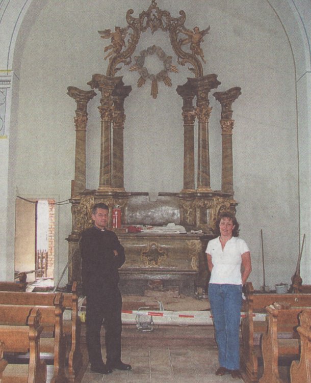 (ez) Der Dachstuhl war verwurmt und nicht mehr zu reparieren. Deshalb wurde die Kirche St. Wendelin in Thaiden (Rhön) saniert. Das neue Dach ist nach historischem Vorbild hergestellt, der Innenraum aufgefrischt. Ab Sonntag, 2. September, wird das Gotteshaus wieder genutzt. Domkapitular Rudolf Hofmann hält um 10 Uhr einen Gottesdienst. Danach ist Pfarrfest. „Vor gut einem Jahr wurde die gesamte Kirche ausgeräumt", erinnert sich Christiane Gürtler. Die stellvertretende Verwaltungsratsvorsitzende der Gemeinde weiß das Datum: „Am 6. August 2006 fand der letzte Sonntagsgottesdienst statt." Ab Anfang September wollen Thaidens Katholiken ihr Gotteshaus wieder mit Leben erfüllen. Damit alles zum selbst gesetzten Termin fertig wird, sind tüchtige Helfer gefragt. Und auch jemand, der vieles koordiniert. Seit knapp drei Monaten verbringt Gürtler viel Zeit auf der Baustelle. Die zweite Bauphase ist mit erheblichen Eigenleistungen der Thaidener verbunden. In Gedanken an die Kirche geht sie abends ins Bett Mit dem Terminplan für das Gotteshaus steht sie morgens auf. „Es soll alles pünktlich fertig werden!" Pfarrer Günter Wondrak zweifelt nicht daran, dass das Werk gelingt: „Mit einer Großfamilie ist sie fit in Organisations- und Führungsaufgaben!" Christiane Gürtler hat fünf Kinder und lebt seit 20 Jahren am Ort. Sie kennt die Menschen und spricht sie gezielt an, wenn sie für Arbeiten im Gotteshaus gebraucht werden: „Beim Dorfgemeinschaftshaus und beim Sportlerheim haben die Thaidener auch vieles in Eigenleistung gemacht. Da weiß man, wer anpackt und etwas kann. Das sind dieselben Leute." Die Gemeinde ist überschaubar, es gibt etwa 350 Katholiken. Im Ortskern überwiegen schmale Straßen, die Kirche steht nicht nur bildlich mitten im Dorf. „In Thaiden gibt es zwar keine kirchlichen Verbände, aber viele Vereine, die alle traditionell mit dem Glauben verbunden sind", sagt Pfarrer Wondrak. Für viele ist der Kirchgang auch soziales Ereignis, das in den Lebensalltag eingebunden ist. Nach dem Gottesdienst treffen sich die Menschen vor dem Portal in der Gruppe zum Gespräch. „Die Frauen links, die Männer rechts", lacht Christiane Gürtler. Ein Jahr lang fanden die Gottesdienste im benachbarten Seiferts statt. „Zu besonderen Anlässen haben wir auch ins Freie eingeladen“, sagt Pfarrer Wondrak. „Wir haben zum Beispiel in der Bittwoche vor der Flurprozession einen Gottesdienst draußen gefeiert, andere Anlässe fanden an der Mariengrotte oder an Allerseelen auf dem Friedhof statt." Gebaut wurde die Kirche Ende des 19. Jahrhunderts, die Weihe erfolgte 1891. „Doch regelmäßige Sonntagsmessen gab es erst Ende der 60er Jahre des 20. Jahrhunderts", weiß der Pfarrer. Vorher wurden in Thaiden Gottesdienste nur an großen kirchlichen Festen oder zur Erstkommunion gefeiert. Nach über einem Jahrhundert war der Dachstuhl sehr verwurmt und nicht mehr zu reparieren. Das Architekturbüro Sichau und Walter aus Fulda übernahm die Planung für die Sanierung. Eine Besonderheit: Das Kirchendach wurde nach historischem Vorbild wiederhergestellt. „Das ist eine Lehmwickeldecke aus Knüppeln, Stroh und Lehm", erklärt Gürtler. Für das Gebälk wurde Douglasie gewählt, ein widerstandsfähiges Nadelholz, In einem besonderen Verfahren gehärtet. Das Holz hält durch spezielle Verzapfungen in sich, also ohne weitere Befestigungsmittel. Auch die Innendecke des Raumes wurde erneuert. Diese denkmalpflegerische Maßnahme war nicht billig. „Insgesamt kosteten beide Bauabschnitte zusammen etwa 200 000 Euro", berichtet Pfarrer Wondrak. „Das Bistum gibt knapp 60 Prozent. Die Eigenleistung der Gemeinde wird angerechnet." Die Arbeiten der Hehler waren auf die Innenrenovierung beschränkt. Zudem wirkten sie bei der Neugestaltung des Kirchplatzes mit. Der Tag der Wiedereinweihung am 2. September hat für Pfarrer Wondrak besondere Bedeutung. Vor 13 Jahren wurde er Anfang September Pfarrer im Ulstertal. Als Dechant stand er dem bisherigen Dekanat Hilders vor, das inzwischen im Pastoralverbund St. Michael Hohe Rhön aufgegangen ist. Quelle: Bonifatius-Boote |
