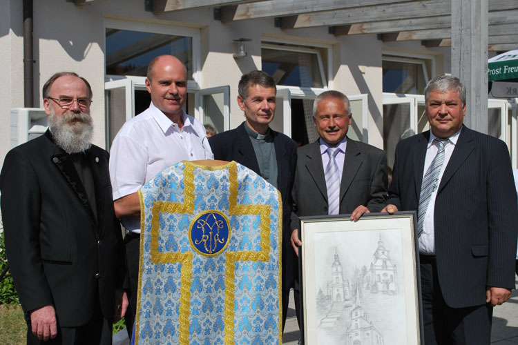 Er hatte vor wenigen Tagen die Pfarrei St. Hubertus in Amöneburg-Mardorf bei Marburg übernommen. Gleichzeitig war dies das Ende der drei Pfarreien. Denn Seiferts gehört nun zu Wüstensachsen. Nach der musikalischen Begrüßung durch die Männerchöre Liederkranz Findlos-Batten, Edelweiß Thaiden und Teutonia Seiferts begrüßte Werner Vey, Sprecher des Pfarrgemeinderates Batten, die Gäste. „In Dankbarkeit schauten heute die drei Pfarrgemeinden auf das mit Ihnen Erlebte zurück, auf viele schöne Gottesdienste, Familienfeiern und Pfarrfeste“, sagte Vey. Viele Taufen und Kommunionfeiern hätte es mit den Gläubigen gegeben. Zahlreiche Paare hätten sich während ihrer Amtszeit das Ja-Wort gegeben. Aber nicht nur Stunden des Glücks und der Freude, auch Stunden des Abschieds und der Trauer hätten sie gemeinsam erfahren. Nicht vergessen dürfe man aber auch die gemeinsamen Arbeitseinsätze bei den Kirchenrenovierungen in Thaiden und Batten. Als Zeichen des Dankes überreichte er neben einem Buch über die „Rom-Pilgerfahrt“ und einem Bildband über Batten ein Marien-Messgewand. Der Hilderser Bürgermeister Hubert Blum (SPD) bedankte sich im Namen seines Ehrenberger Kollegen Thomas Schreiner (parteilos) für die Zusammenarbeit mit den Gemeinden und politischen Gremien. Die große Zahl der Gäste sei Beweis für seine Beliebtheit und Anerkennung für sein seelsorgerisches Engagement. Wüstensachsens Pfarrer Heinrich Maicher lobte die Zusammenarbeit mit Günter Wondrak, der stets ein offenes Herz und große Bereitschaft gezeigt habe, wenn es darum ging, einander zu helfen. Maicher erinnerte dran, dass der Pfarrer im November 2006 von Fuldas Bischof Heinz Josef Algermissen zum ersten Moderator des neu eingerichteten Pastoralverbundes „St. Michael Hohe Rhön“ ernannt wurde. Die Wallmusiker der drei Pfarrgemeinden und der Kinderchor Findlos-Batten verabschiedeten ihren Pfarrer musikalisch. Er sei beeindruckt von der schönen Verabschiedungsfeier, so Wondrak, sie habe gezeigt, wie gut die Pfarrgemeinden miteinander harmonierten und sich als eine Gemeinde fühlten. Deshalb bedauere er, dass Seiferts jetzt abgespalten werde, da die Pfarrgemeinden aufgrund ihrer Historie zueinander gehörten. Noch nie sei er solange an einem Ort gewesen wie während seiner 15-jährigen Amtszeit in der Rhön. Er habe in der Region seine Heimat gefunden und er freue sich, wenn er auch weiterhin in den Rhöngemeinden willkommen sei. Wondrak: „Der Abschied fällt mir sehr schwer.“ Quelle: Fuldaer Zeitung |